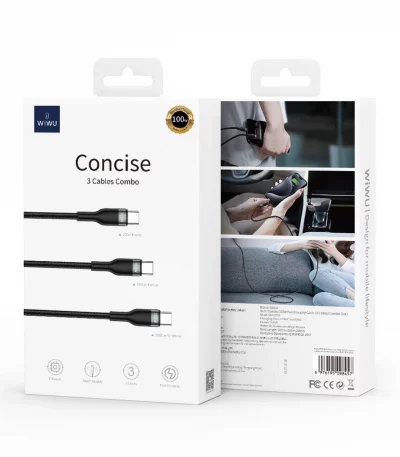 WiWU Combo de Câbles de Charge Concise Type-C vers Type-C – Gris