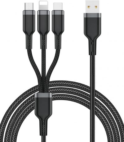 3 307 CFACâble 3-en-1 WiWU Platinum (USB vers Type-C, Lightning, Micro USB), 3.1A, 1,2m, tressé, certifié CE/FCC/ROHS.