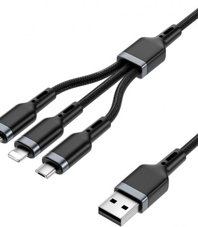 WIWU Câble de Charge USB 3 en 1 Starlink Série B 3.1A avec Type-C, Lightning et Micro – Noir