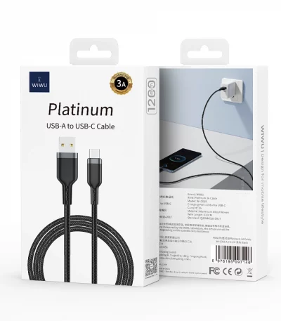 2 315 CFACâble WiWU Platinum USB vers Type-C, 3A, 1,2m, tressé, charge rapide pour Samsung/Huawei/Xiaomi, certifié CE/FCC/ROHS.