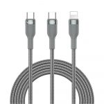 WiWU Câble de Charge Concise 2 en 1 Type-C vers Type-C & Lightning – Gris