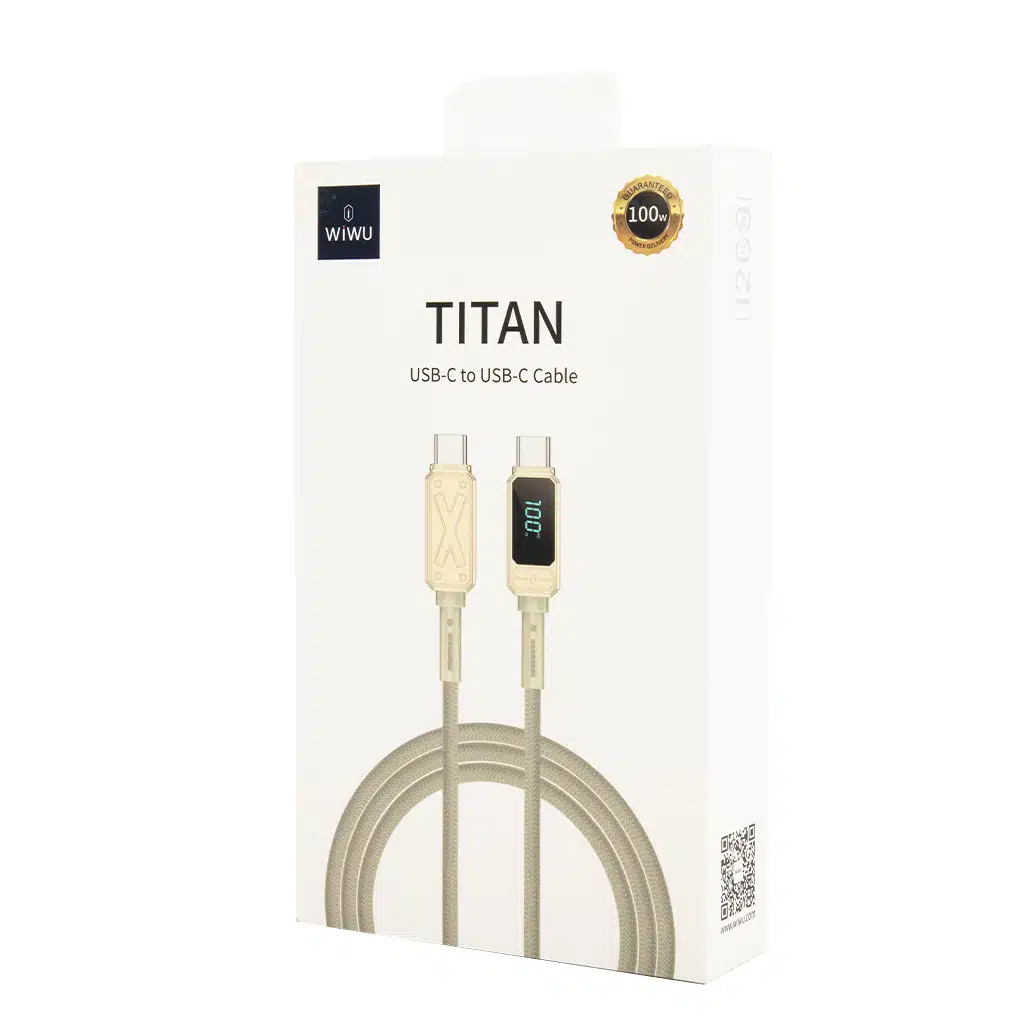 Câble de charge rapide WiWU Titan Type-C vers Lightning, 30W, 1,2m, en alliage de zinc + fil tressé, affichage numérique, certifié CE/FCC/ROHS.