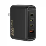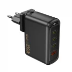 Chargeur rapide GaN WiWU Warriors 100W avec adaptateur UK/EU/US, compact et résistant aux chutes.